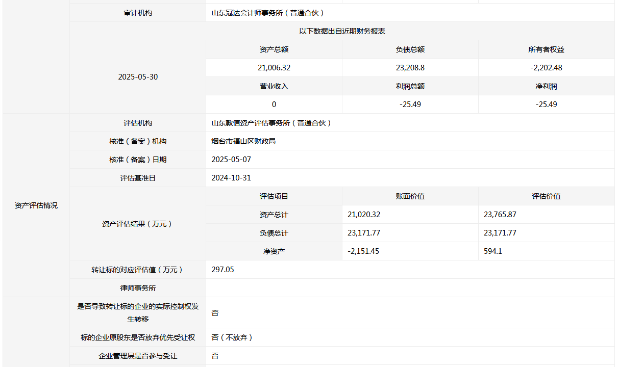 轉讓方: 煙臺市福山區(qū)財政局(煙臺市福山區(qū)國有資產監(jiān)督管理局)