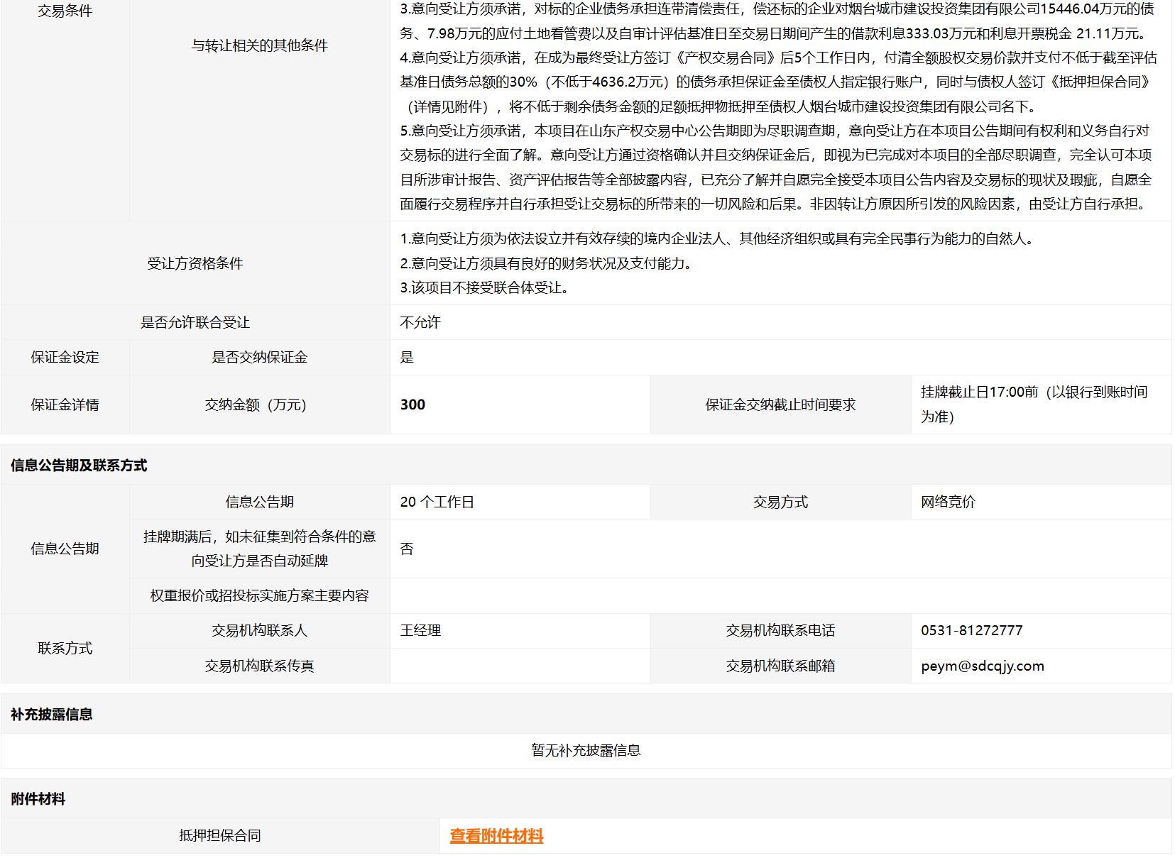 煙臺市景新置業(yè)有限公司50%國有股權(quán)