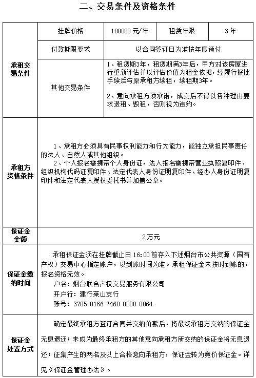 芝罘區(qū)北馬路240號大樓部分1層及2-3層招租交易公告